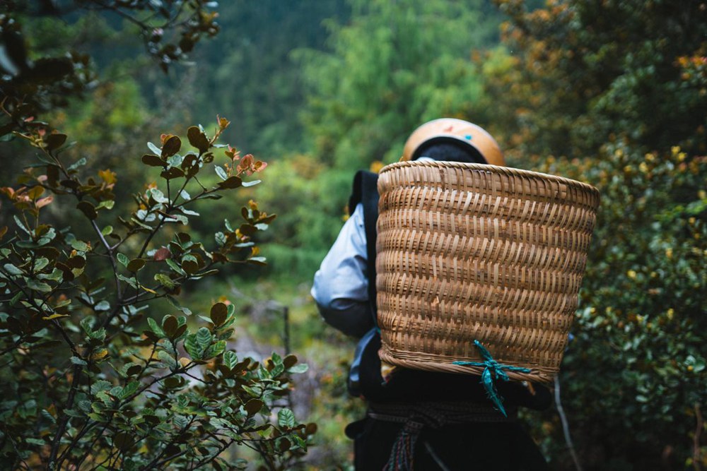 背著竹婁進山林尋找松茸。圖片由林芝市松茸協(xié)會提供