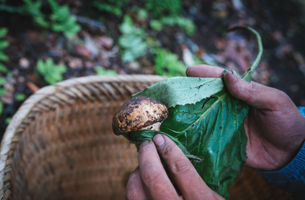 用寬大的葉子包好松茸保持其鮮美。圖片由林芝市松茸協(xié)會提供