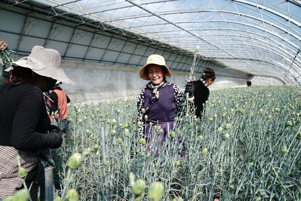 拉薩市堆龍德慶區(qū)群眾在蔬菜花卉產(chǎn)業(yè)園內(nèi)勞作(2021年3月4日攝)。新華社記者 劉洪明 攝