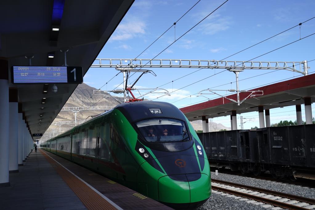 拉林鐵路動車組——我國首創(chuàng)的“油電混合”高原動車。復(fù)興號高原內(nèi)電雙源動車組,是我國在鐵路裝備技術(shù)高速發(fā)展的基礎(chǔ)上取得的最新成果。它運(yùn)用全球首創(chuàng)的“內(nèi)燃+電力”雙動力牽引模式,可實(shí)現(xiàn)全程牽引順暢不換車,多項技術(shù)填補(bǔ)了行業(yè)空白,展示了“中國創(chuàng)新”的成就。