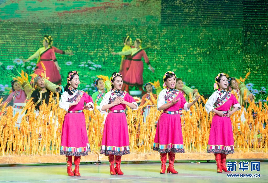 8月19日,慶祝西藏和平解放70周年文藝演出《西藏兒女心向黨》在拉薩西藏人民會(huì)堂精彩上演。新華社記者 黃敬文 攝
