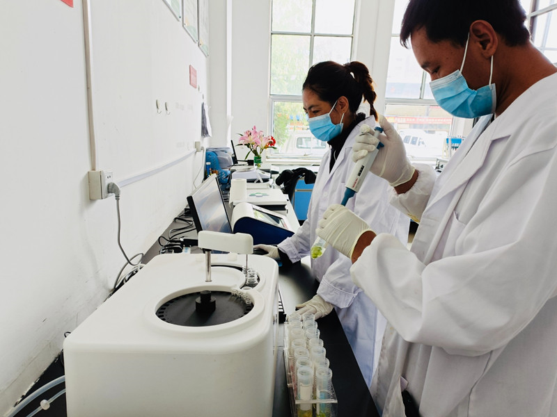 圖為西藏拉薩東嘎農(nóng)副產(chǎn)品批發(fā)市場(chǎng)快檢實(shí)驗(yàn)室工作人員在對(duì)該市場(chǎng)內(nèi)農(nóng)副產(chǎn)品進(jìn)行檢測(cè)。記者 央金 攝