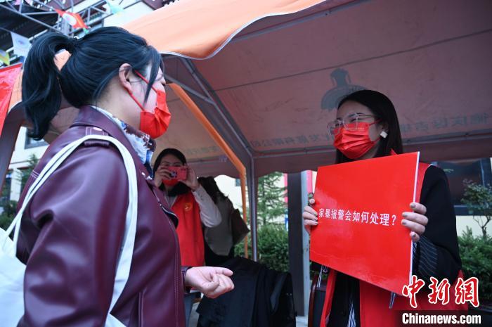 圖為市民與志愿者互動?!≮w朗 攝