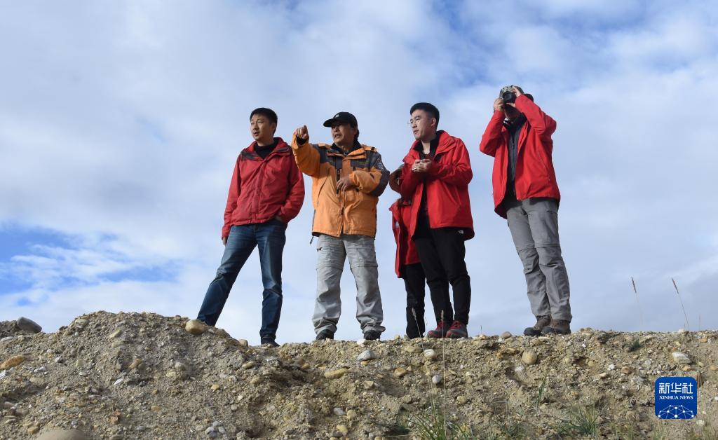 9月9日,在西藏阿里地區(qū)內(nèi)的喜馬拉雅山脈,中科院地理科學(xué)與資源研究所客座教授李渝生(左二)和年輕的科考隊員觀察地貌。新華社記者 杜剛 攝