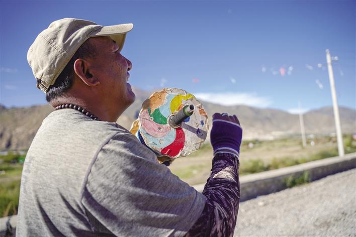 每年秋日,人們聚集在拉薩河畔,享受斗風(fēng)箏帶來(lái)的各種樂(lè)趣。除了放風(fēng)箏外,撿風(fēng)箏也是很開(kāi)心的事,被割斷線(xiàn)的風(fēng)箏,誰(shuí)撿到就歸誰(shuí)。因此,一些孩子看到天上飄落下來(lái)的風(fēng)箏便趕緊跑過(guò)去撿,有時(shí)大人也會(huì)參與其中,好不熱鬧,直至傍晚時(shí)分人們才依依不舍地漸漸散去。