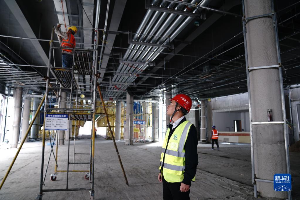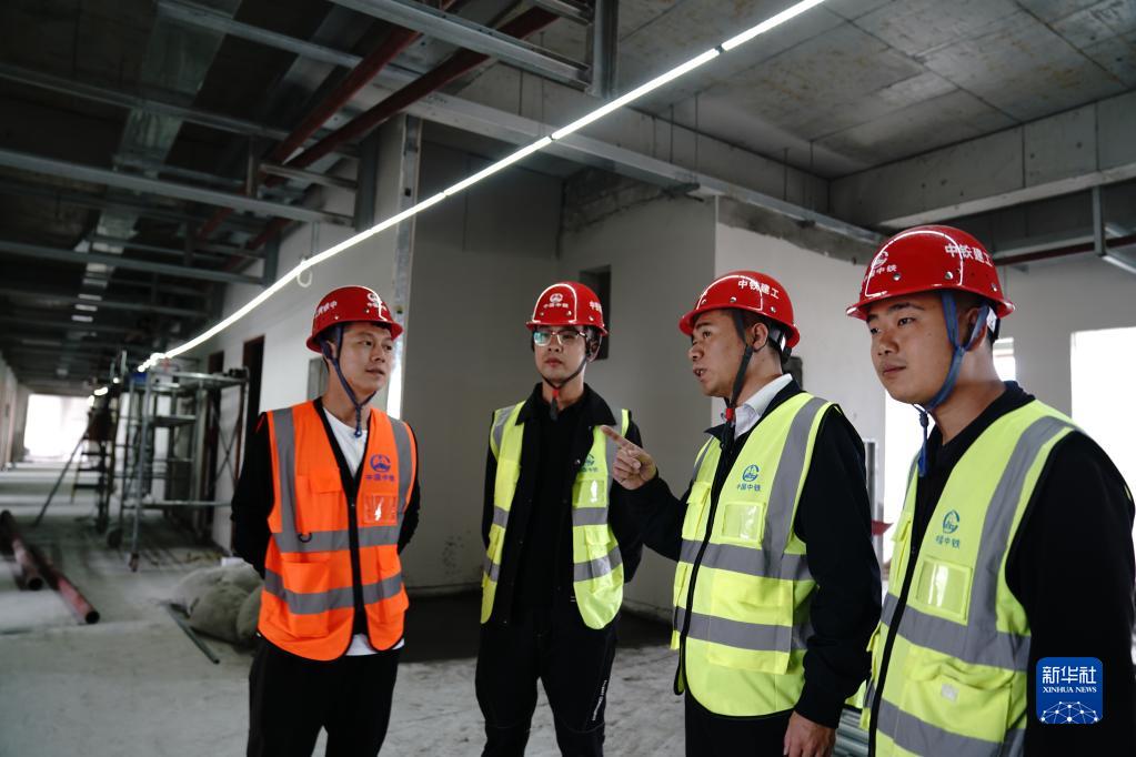 張磊正在查看項(xiàng)目室內(nèi)施工現(xiàn)場(chǎng)(2021年9月18日攝)。新華社記者 劉洪明 攝