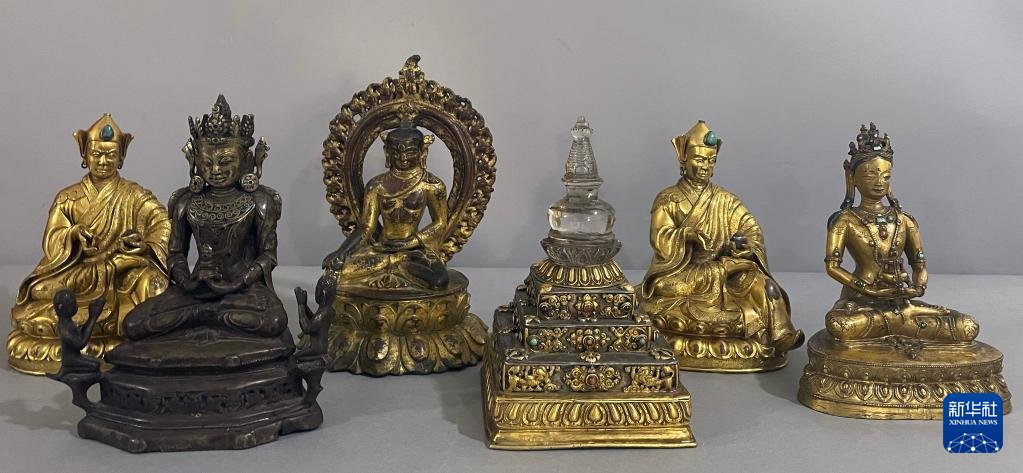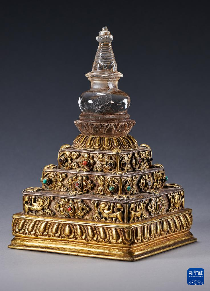 銅鎏金水晶嵌寶石供養(yǎng)塔(資料照片)。記者從9月26日召開(kāi)的全國(guó)文物援藏工作電視電話會(huì)議上獲悉,國(guó)家文物局將從美國(guó)成功追索回國(guó)的12件文物藝術(shù)品整體劃撥西藏博物館。新華社發(fā)