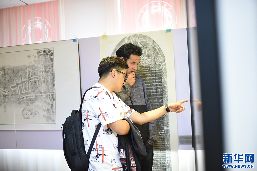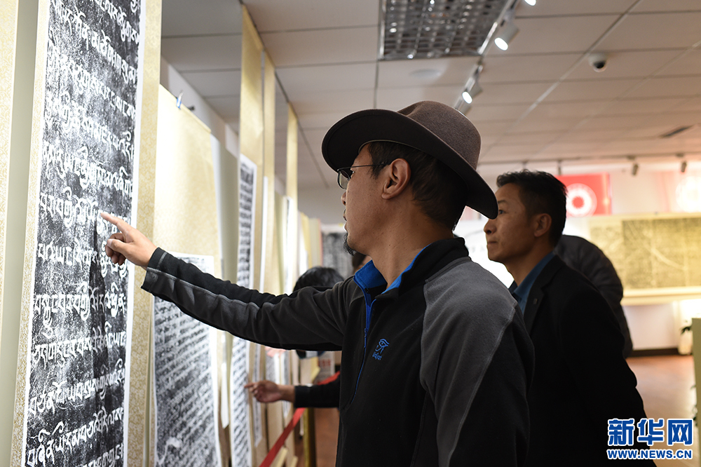 9月29日,在西藏大學新校區(qū)圖書館,參觀者觀賞石碑拓片內容。新華網(wǎng) 旦增努布 攝