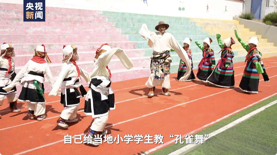 文布南村孔雀舞第四代非遺傳承人 次仁頓珠:我從13歲到今年59歲一直在跳“孔雀舞”、教“孔雀舞”,現(xiàn)在孩子們跳得很好,我覺得“孔雀舞”得到了很好的傳承,自己給當(dāng)?shù)匦W(xué)學(xué)生教“孔雀舞”同時經(jīng)常會到其他地方其他學(xué)校教“孔雀舞”。