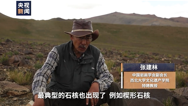 中國巖畫學(xué)會副會長、西北大學(xué)文化遺產(chǎn)學(xué)院特聘教授 張建林:最典型的石核也出現(xiàn)了,例如楔形石核。年代不好判斷,我們對現(xiàn)在藏北地區(qū)的細(xì)石器,現(xiàn)在還沒有這個年代上的框架,我們只是分布區(qū)域上,細(xì)石器地點發(fā)現(xiàn)得非常多,從那曲一直到阿里。