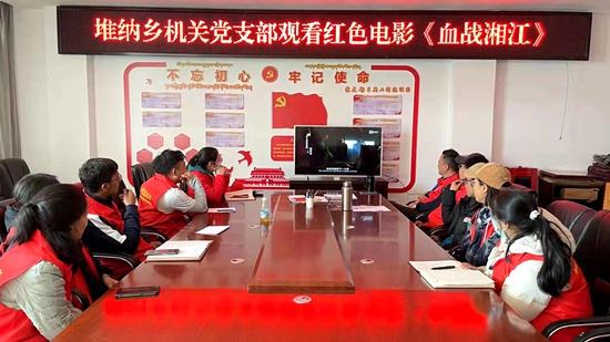堆納鄉(xiāng)新時代文明實踐所組織黨員志愿服務(wù)隊觀看紅色電影。