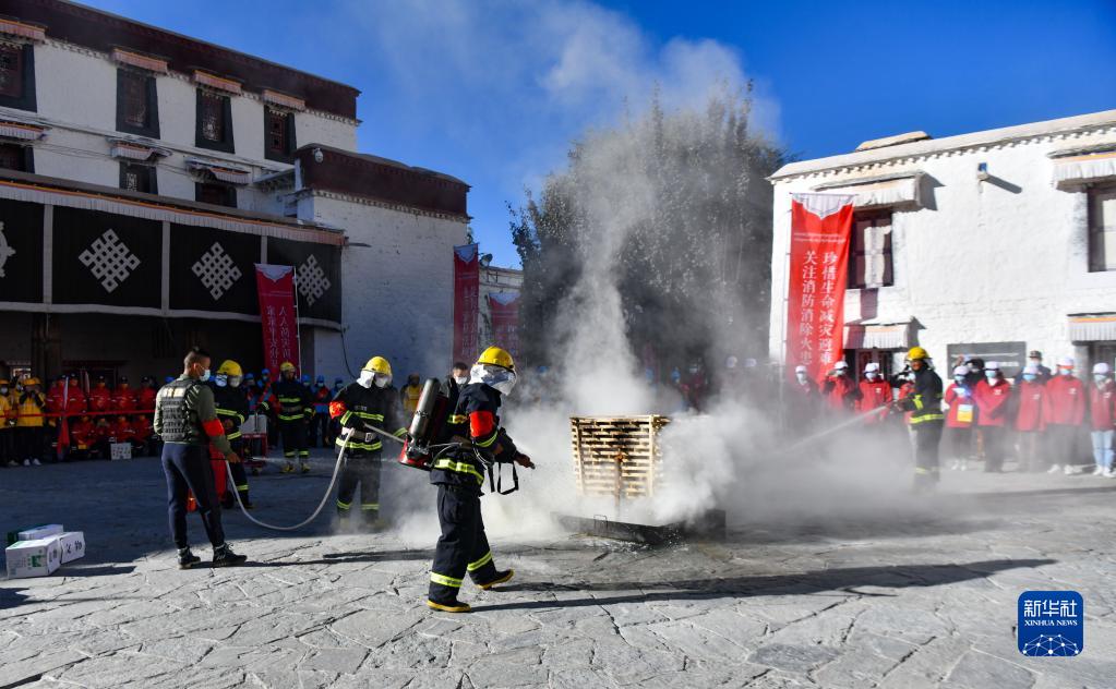 11月4日拍攝的西藏自治區(qū)2021年“119”消防宣傳月活動啟動儀式現(xiàn)場。新華社記者 晉美多吉 攝