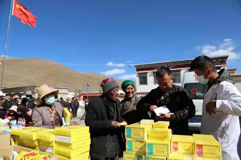 在加麻鄉(xiāng)免費義診活動現(xiàn)場,奇正藏藥山南分區(qū)也給予了大力的支持和幫助,帶來4萬多元的藏藥,包括護膝和護腰等免費發(fā)放給當(dāng)?shù)剞r(nóng)牧民群眾。