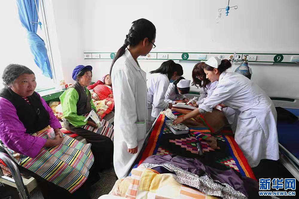 湖北醫(yī)務(wù)人員正在為西藏大骨節(jié)病患者治療。