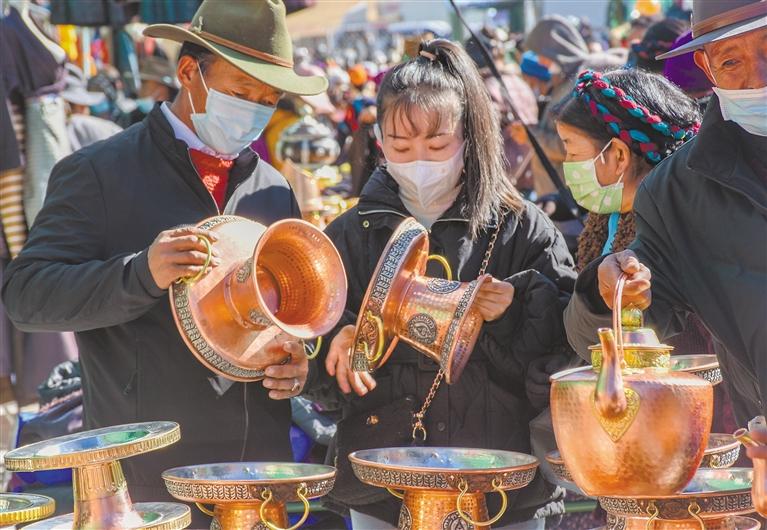 在人氣火爆的物交會(huì)上,循著商戶的叫賣(mài)聲、消費(fèi)者的問(wèn)詢聲、孩子們的歡笑聲,一幅幅生動(dòng)質(zhì)樸的購(gòu)銷畫(huà)面躍然眼前,置身其中,讓人真切感受到了雅礱大地的冬日活力。