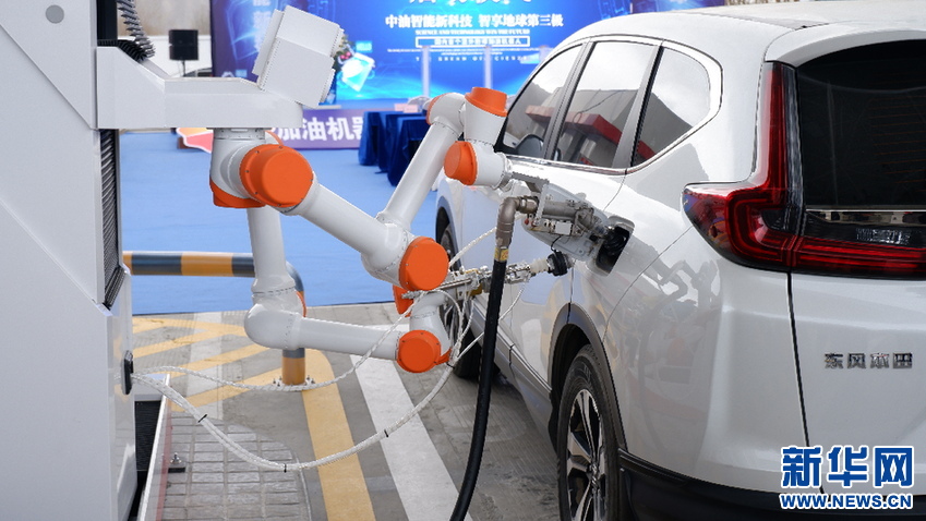 “手機APP上輸入加油的金額,機器人就能精準(zhǔn)定位并打開油箱蓋,自動加油,全程司機不用下車。”中國石油工作人員郭珍介紹時,機器人緩緩打開油箱蓋……