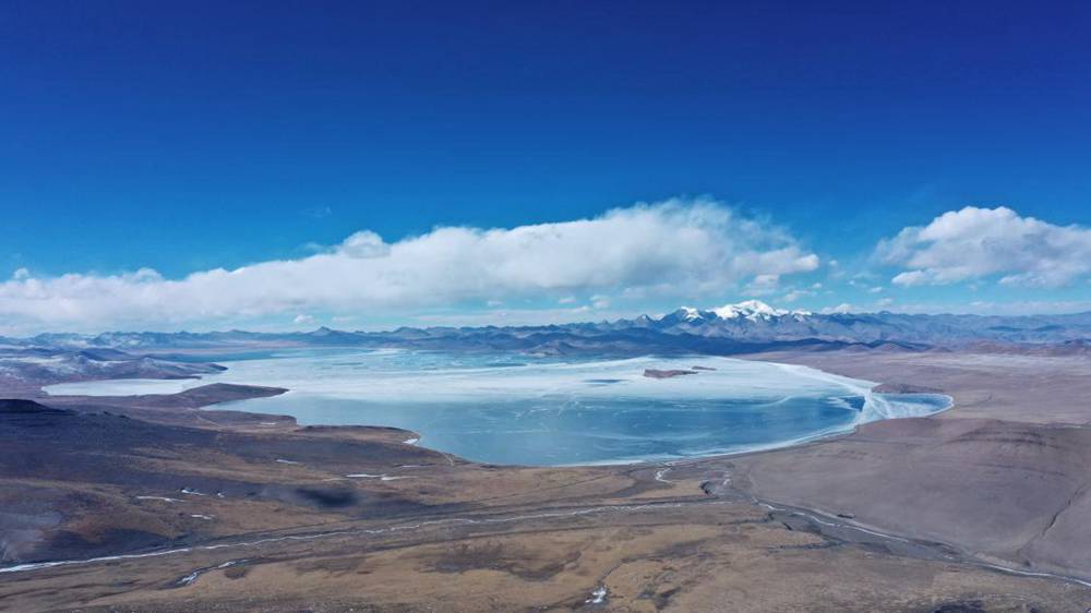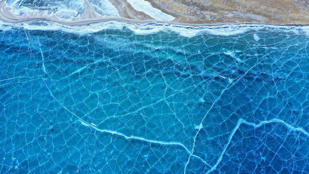 位于西藏山南市洛扎縣和浪卡子縣交界處的普莫雍錯,是喜馬拉雅山脈間的一個咸水湖,湖面海拔5070m。冬季的普莫雍錯湖面會結(jié)冰,冰面通透可見湖底,在陽光的照射下,呈現(xiàn)出動人心魄的藍。