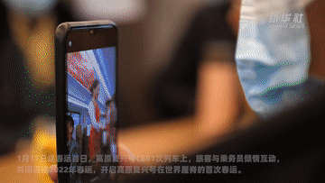 1月17日是春運(yùn)首日,高原復(fù)興號(hào)C881次列車上,旅客與乘務(wù)員傾情互動(dòng),共同迎接2022年春運(yùn),開(kāi)啟高原復(fù)興號(hào)在世界屋脊的首次春運(yùn)。