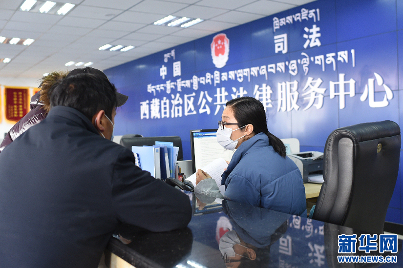 1月24日,在西藏自治區(qū)公共法律服務(wù)中心,律師為群眾講解法律咨詢。新華網(wǎng) 旦增努布 攝