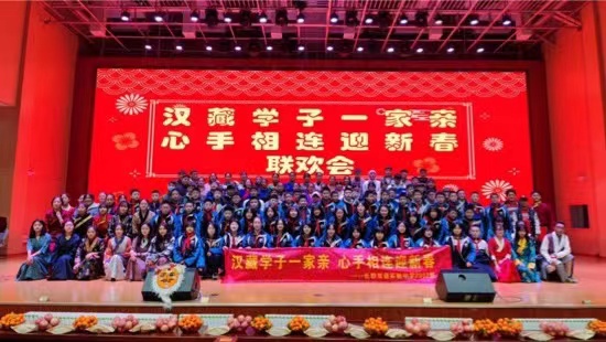 當(dāng)杜鵑花遇見格?;?,當(dāng)魚米之鄉(xiāng)遇見雪域高原,當(dāng)熱情的湖湘學(xué)子遇見了豪放的西藏學(xué)子,一場洋溢著濃濃年味的民族聯(lián)歡會拉開了帷幕。