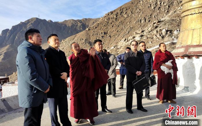嘎瑪澤登(右三)在色拉寺調(diào)研?!∝暽@?攝