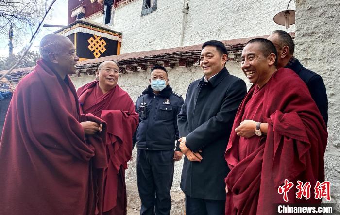 1月28日,調(diào)研組一行先后來到哲蚌寺、城關(guān)區(qū)雪堆白文教集團(tuán)、城關(guān)區(qū)河壩林社區(qū)、色拉寺,看望慰問基層統(tǒng)戰(zhàn)干部、寺管會干部、駐寺派出所干警、消防和部隊(duì)官兵、寺廟僧人以及民營經(jīng)濟(jì)人士等,并以現(xiàn)場察看、聽取匯報、座談交流的形式,詳細(xì)了解寺廟管理、僧尼教育、維護(hù)穩(wěn)定、消防安全和民族團(tuán)結(jié)進(jìn)步創(chuàng)建等方面的工作。