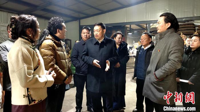 嘎瑪澤登(中)在拉薩市城關(guān)區(qū)雪堆白文教集團(tuán)調(diào)研?!∝暽@?攝