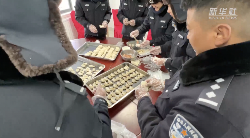 普瑪江塘邊境派出所的民警們?yōu)榱擞有履?,一起在海拔最高的鄉(xiāng)包餃子,感受著節(jié)日里的團圓氛圍。