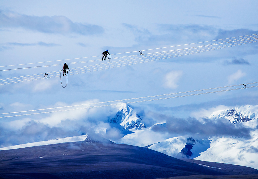 《西藏阿里與藏中電網(wǎng)聯(lián)網(wǎng)工程》(組圖)。張笑譚 攝