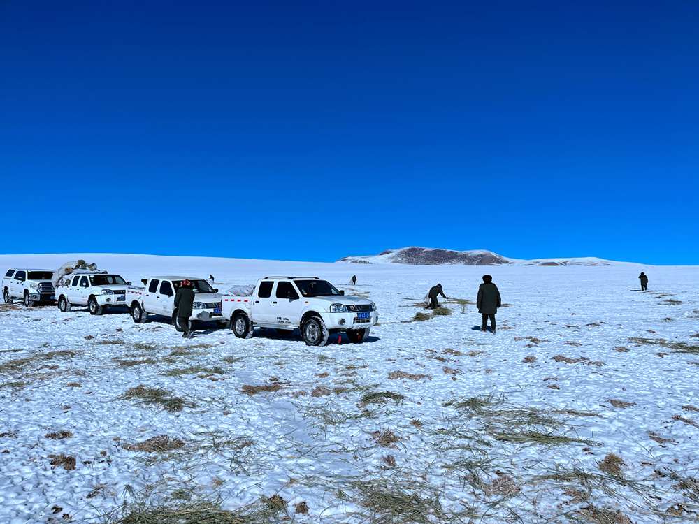 剛開始,管護(hù)員和林草局工作人員只投放了一半的干草到草地上?!霸蹅円彩堑谝淮胃?,誰知道這些藏羚羊是否‘領(lǐng)情’?”仁增羅布笑著說。