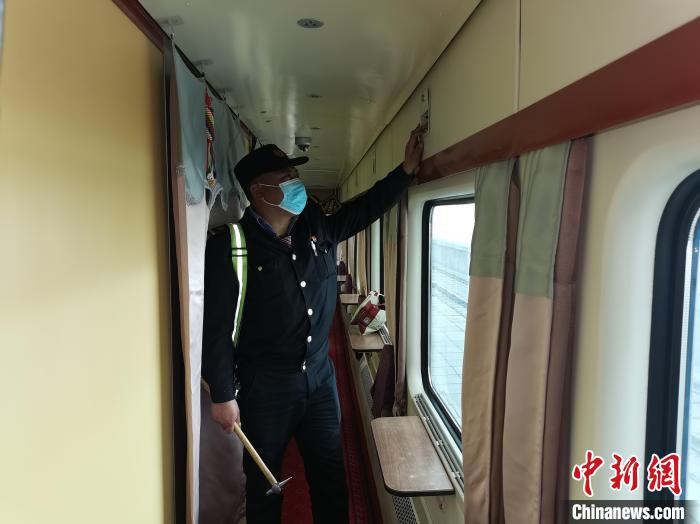 資料圖為嘎瑪達(dá)吉對列車服務(wù)設(shè)施進(jìn)行檢查。青藏集團(tuán)公司供圖