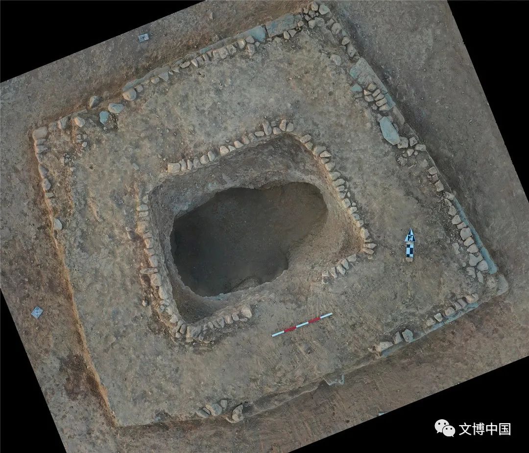 通過(guò)探方發(fā)掘法和解剖法,結(jié)合周邊大地層情況,發(fā)現(xiàn)①層為表土層,②、③層及向下為生土層,無(wú)人類活動(dòng)跡象。封土墓葬基本均開(kāi)口于①層下,打破生土層構(gòu)筑。初步推斷營(yíng)建方式應(yīng)為在當(dāng)時(shí)地面根據(jù)地勢(shì)經(jīng)過(guò)削平或墊土等平整工作后,在中央位置挖出墓壙營(yíng)建墓室,再對(duì)墓室進(jìn)行填土,而后留出墓道位置,同時(shí)在填土外圍壘起相同高度的石墻基,以保護(hù)內(nèi)部填土,至一定高度后對(duì)局部進(jìn)行夯打,再向上封土至一定高度后對(duì)石墻范圍內(nèi)整體進(jìn)行封蓋夯實(shí),防止雨水滲透,再進(jìn)行整體封土包住外圍石墻,完成封土墓葬的營(yíng)建。墓葬內(nèi)部除對(duì)局部填土進(jìn)行夯打外,無(wú)明顯分層。