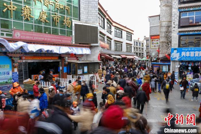資料圖為拉薩市民購買藏歷新年年貨卡塞。貢嘎來松 攝