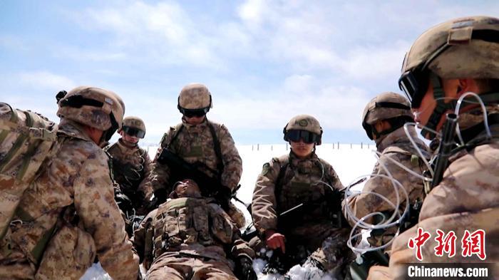 在空曠的雪地里寒風(fēng)呼嘯,官兵們在零下28攝氏度的極寒條件下,以跪地爬行的方式移步前行,途中景家俊出現(xiàn)高反缺氧。