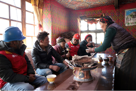 帳篷里大家圍坐在一起,喝著熱氣騰騰的酥油茶,熱情的讓卓不停地向服務(wù)隊(duì)隊(duì)員獻(xiàn)上脆脆的風(fēng)干肉,有說(shuō)有笑。讓卓85歲的老奶奶瑪姆也湊起熱鬧聊家常,即使聽力有些下降,但聊到用電給生活帶來(lái)的改變時(shí),老奶奶笑著用流利的藏語(yǔ)說(shuō)“黨的政策好??!”