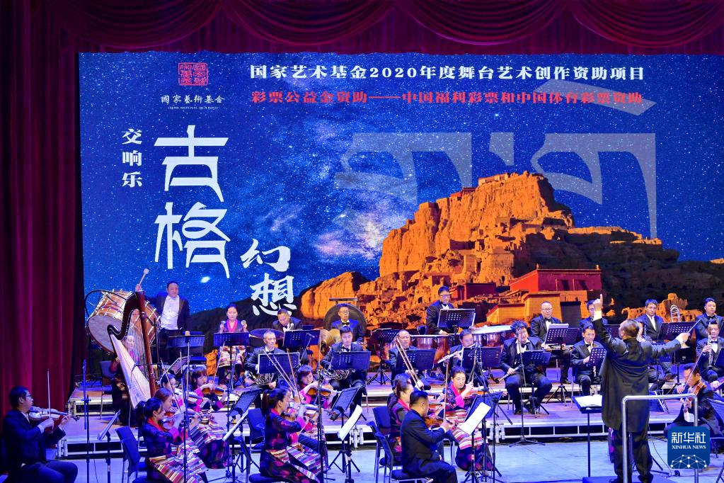 4月3日,國(guó)家藝術(shù)基金2020年度舞臺(tái)藝術(shù)創(chuàng)作資助項(xiàng)目——交響樂(lè)《古格幻想》在拉薩市的藏戲藝術(shù)中心首演。