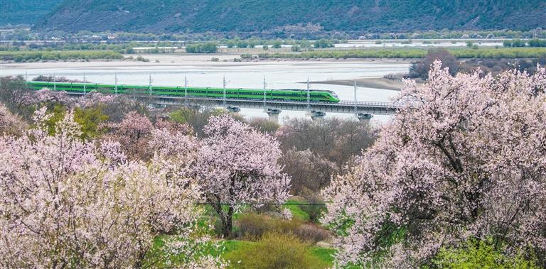 拉林鐵路迎來通車運營以來的第一個春天。復(fù)興號動車每日穿梭于雅魯藏布江畔的層巒疊嶂間,與兩岸盛開的桃花共同構(gòu)成一幅優(yōu)美畫卷。