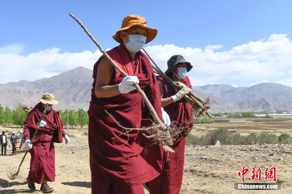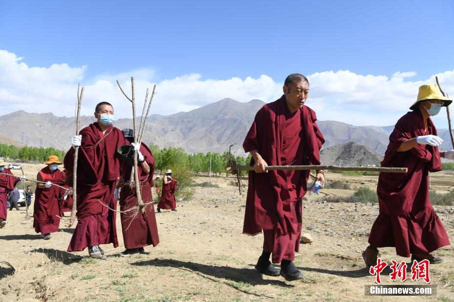 4月15日,西藏大昭寺僧人在蔡公堂鄉(xiāng)植樹(shù)。當(dāng)日,西藏大昭寺在拉薩市城關(guān)區(qū)蔡公堂鄉(xiāng)啟動(dòng)拉薩南北山2800余畝山地綠化工程項(xiàng)目。 中新社記者 貢嘎來(lái)松 攝