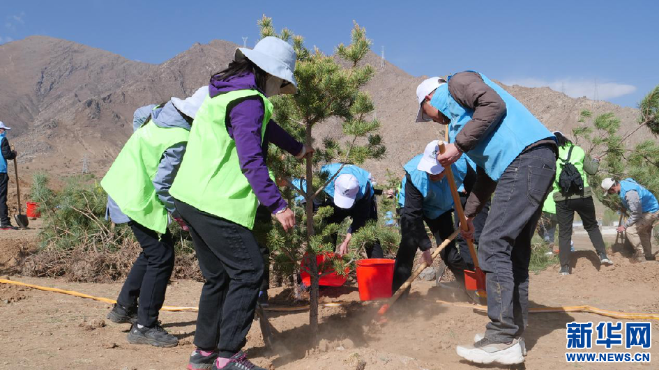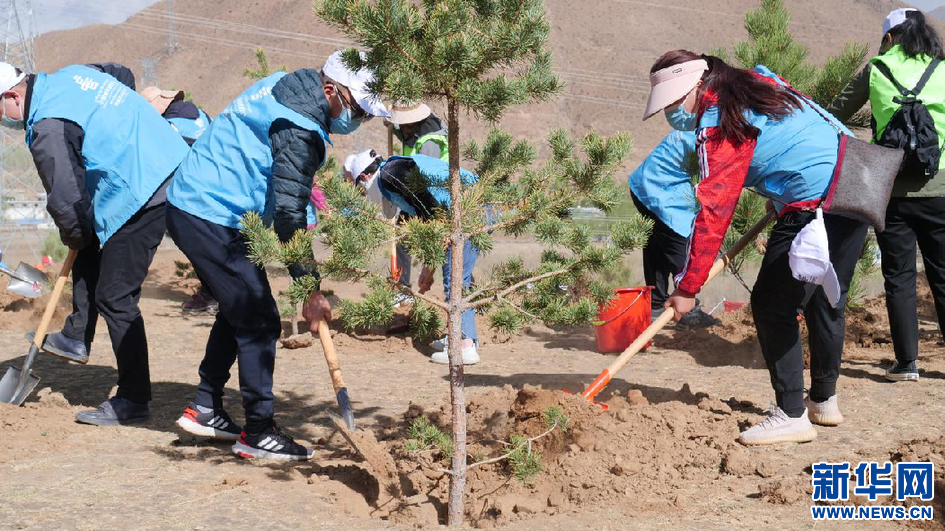 圖為植樹活動現(xiàn)場(4月15日攝)新華網(wǎng)發(fā) 貢桑央吉(實(shí)習(xí)生)攝