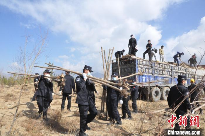 圖為西藏邊檢總站輪訓(xùn)大隊(duì)民警植樹活動(dòng)現(xiàn)場 。西藏邊檢總站輪訓(xùn)大隊(duì)供圖