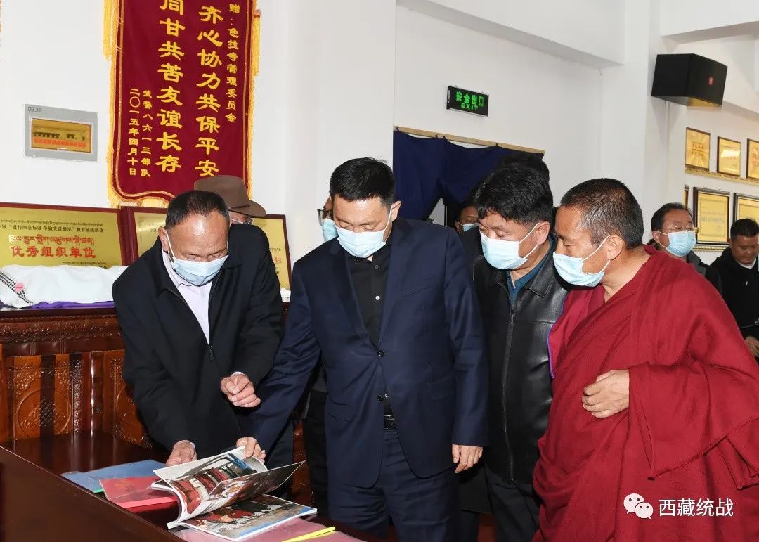 4月26日,西藏自治區(qū)黨委常委、統(tǒng)戰(zhàn)部部長,區(qū)政協(xié)黨組副書記、副主席嘎瑪澤登率自治區(qū)應(yīng)對新冠肺炎疫情工作領(lǐng)導(dǎo)小組宗教領(lǐng)域組前往小昭寺、色拉寺調(diào)研督導(dǎo)疫情防控工作,聽取拉薩市宗教領(lǐng)域和色拉寺疫情防控工作匯報(bào);召開宗教領(lǐng)域組專題會議,聽取各成員單位疫情防控工作匯報(bào)并講話,強(qiáng)調(diào)要切實(shí)增強(qiáng)“四個(gè)意識”、堅(jiān)定“四個(gè)自信”、捍衛(wèi)“兩個(gè)確立”、做到“兩個(gè)維護(hù)”,時(shí)刻繃緊疫情防控這根弦,堅(jiān)決落實(shí)黨中央疫情防控總策略和總方針不動搖,落實(shí)王君正書記和區(qū)黨委決策部署不含糊,筑牢常態(tài)化疫情防控嚴(yán)密防線,以宗教領(lǐng)域疫情防控和維護(hù)穩(wěn)定的實(shí)際成效,迎接黨的二十大勝利召開。