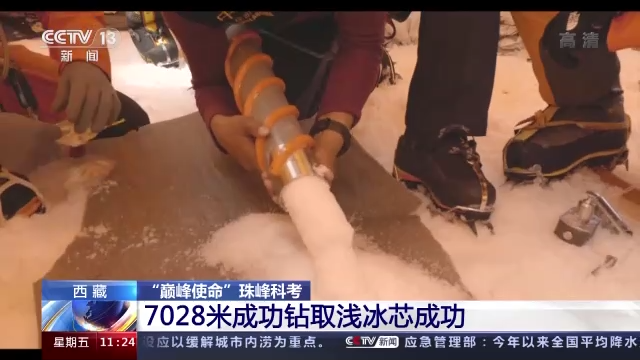 4月28日夜里,三根來自珠峰海拔7028米處的淺冰芯已被送到了珠峰大本營(yíng)。