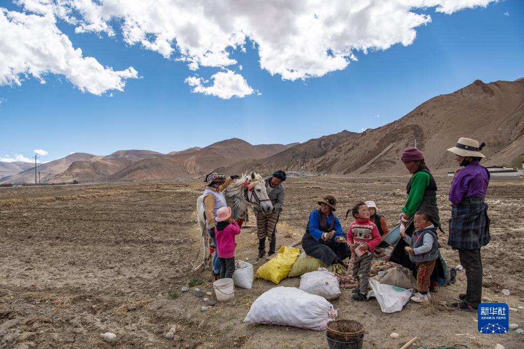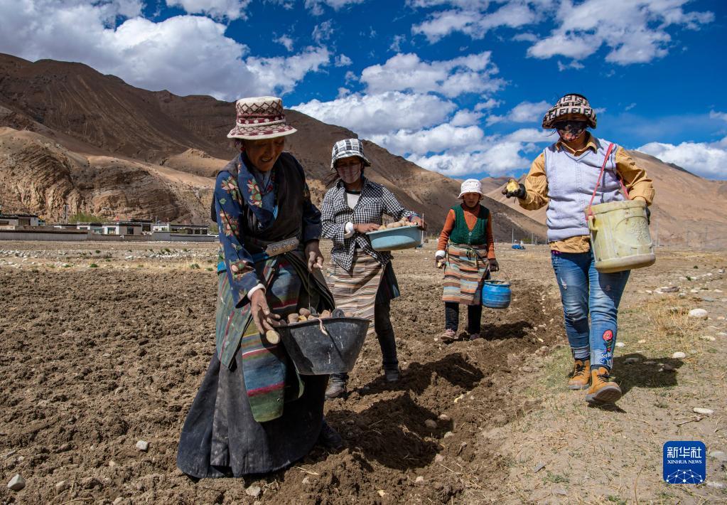 西藏定日縣扎西宗鄉(xiāng)日白拉新村的村民在播種土豆(5月10日攝)。新華社記者 孫非 攝