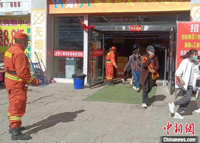 圖為日喀則市森林消防大隊(duì)開展火災(zāi)疏散演練?!÷迳nD珠 攝