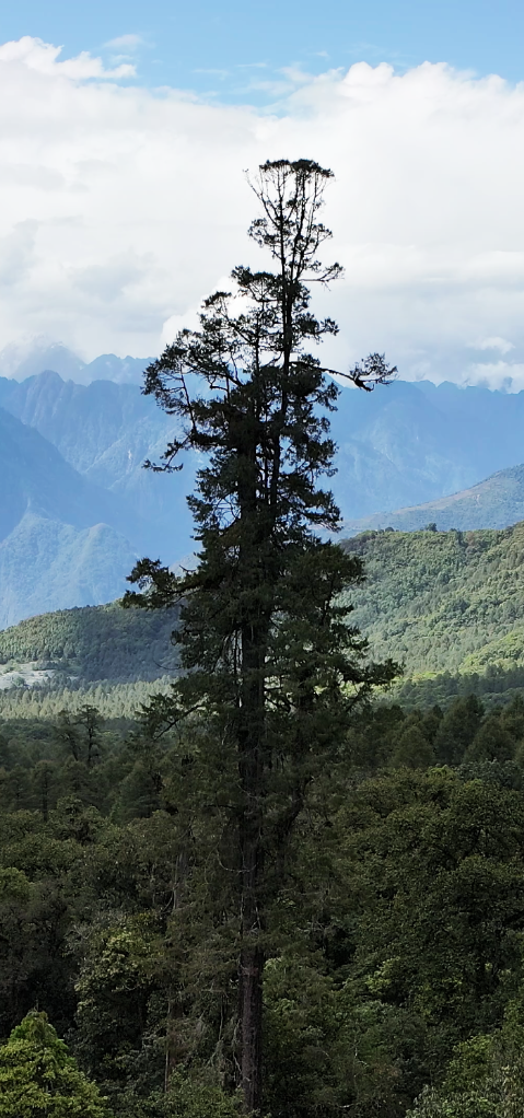 墨脫位于西藏東南部,地處雅魯藏布江下游,擁有豐富的生物多樣性和廣闊的原始森林。不丹松主要分布在海拔1400米至2500米的山地雨林與亞熱帶氣候區(qū),要測(cè)量樹高難度很大。