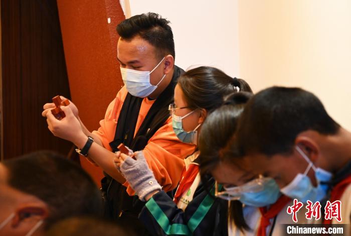 此次展覽的首場(chǎng)講解由拉薩市北京實(shí)驗(yàn)中學(xué)學(xué)生承擔(dān)。活動(dòng)還邀請(qǐng)了在校學(xué)生體驗(yàn)了古建榫卯組裝、北京古城池拼圖等社教活動(dòng)。