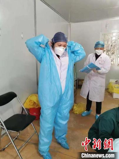 援藏歸來,沈彧瀾(前)參與到疫情防控工作。受訪者供圖