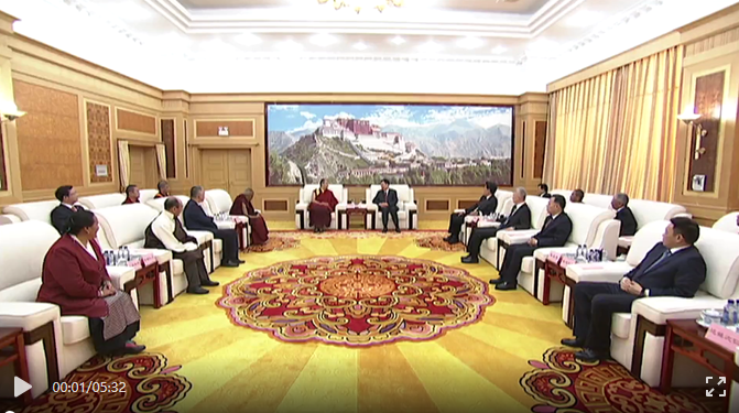 近日,西藏自治區(qū)黨委書記王君正在拉薩會(huì)見班禪額爾德尼·確吉杰布。 自治區(qū)領(lǐng)導(dǎo)洛桑江村、莊嚴(yán)、陳永奇、嘎瑪澤登、達(dá)娃次仁、甲熱·洛桑旦增、珠康·土登克珠、薩龍·平拉、索朗仁增一同會(huì)見。