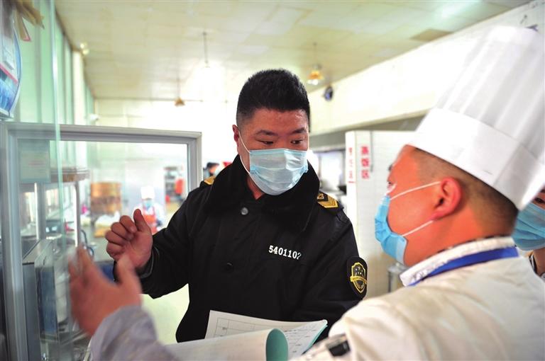 西藏自治區(qū)市場監(jiān)管局工作人員檢查學(xué)校食品安全。