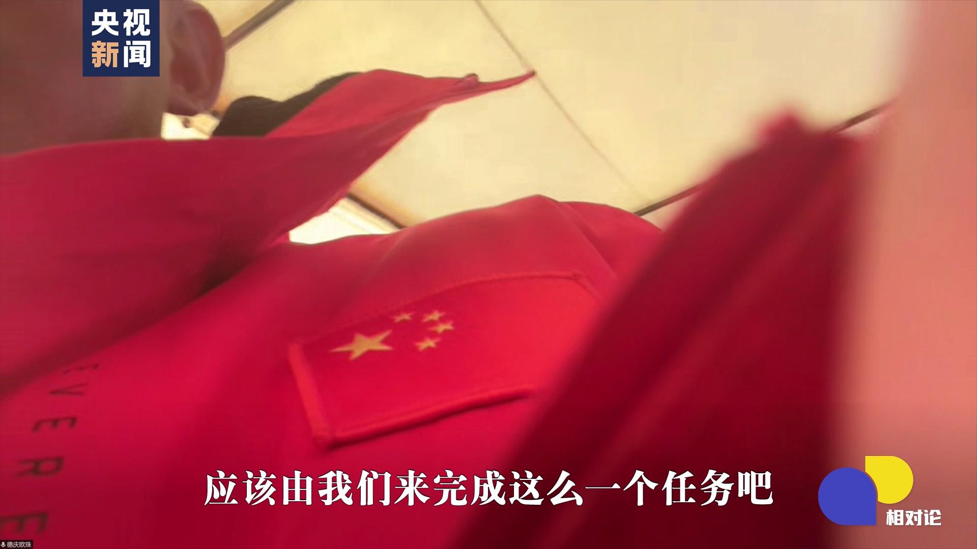 說起這些的時(shí)候,鏡頭剛好對(duì)著歐珠胸前的國旗。